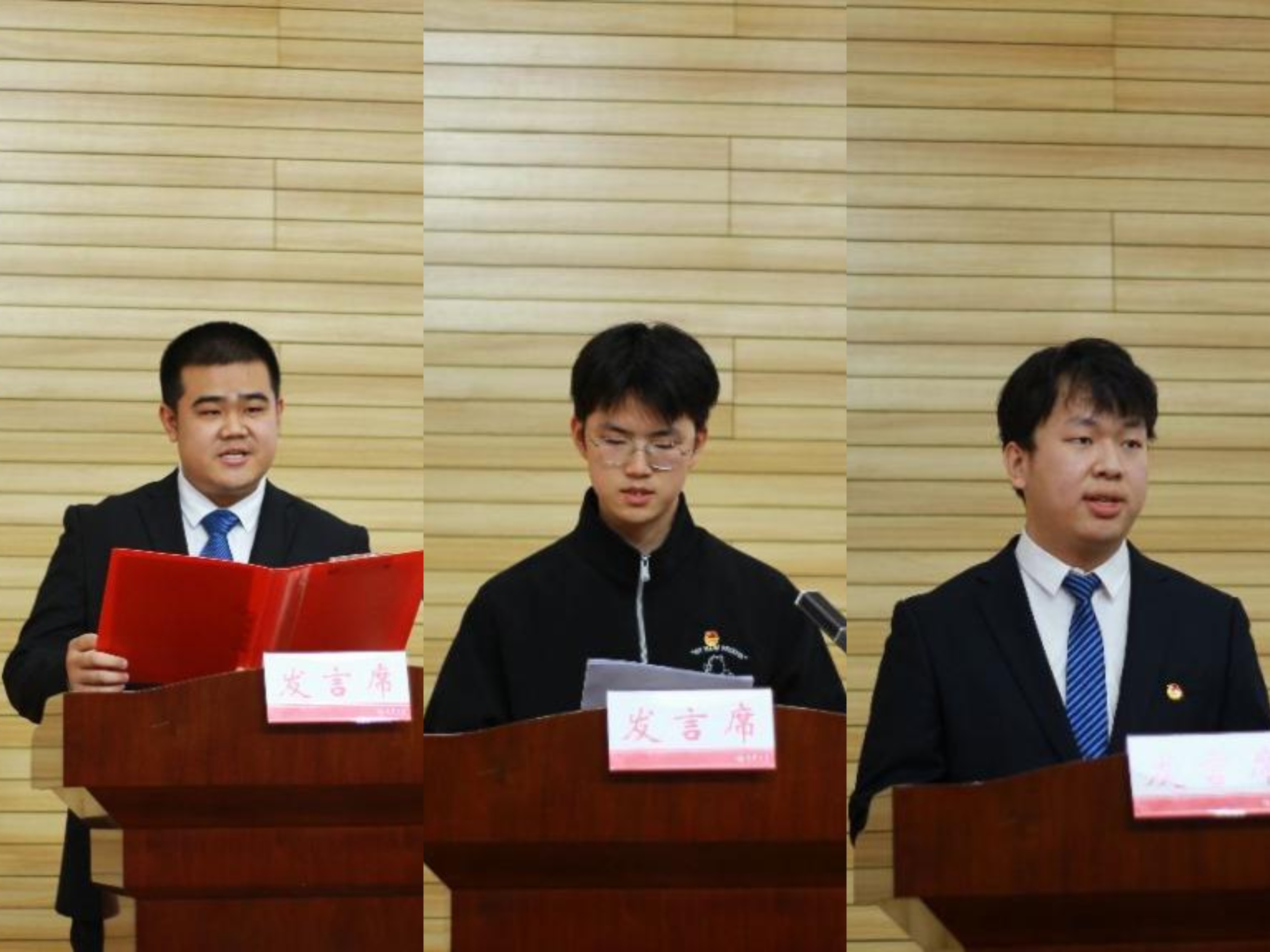 管龙陵宣读第二十六届团委、学生会干部名单,第二十六届学生会执行主席王泉霖同学宣读倡议书,号召全体成员为学院发展贡献青春力量。