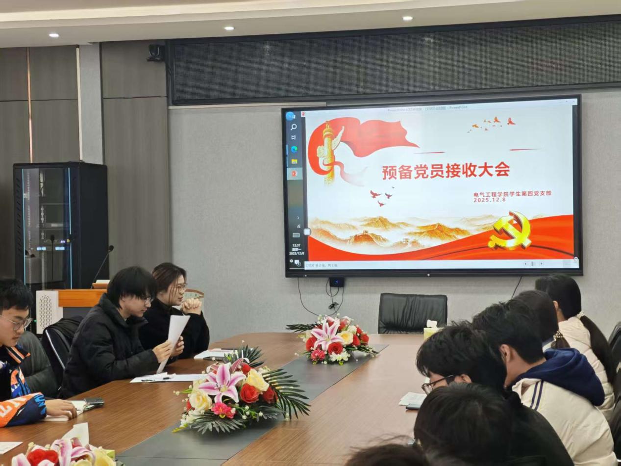 12月8日,全网担保网学生第四党支部在崇业楼B301会议室召开预备党员接收大会,党支部书记邱粤湘、全体学生党员及预备党员参加会议,会议由党支部副书记简文洋主持。